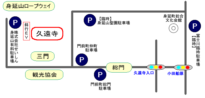 ※寺平臨時駐車場からはシャトルバスは運行しません。徒歩で久遠寺までお越しください(約10分)