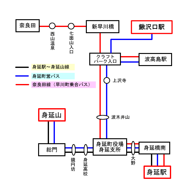 鰍沢口駅西嶋神社波高島駅上沢寺波木井山身延支所前身延高校大野身延駅