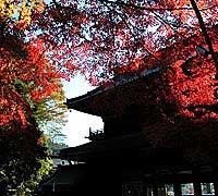身延山の紅葉は、杉と紅葉した落葉樹とのコントラストが実に艶やかで、