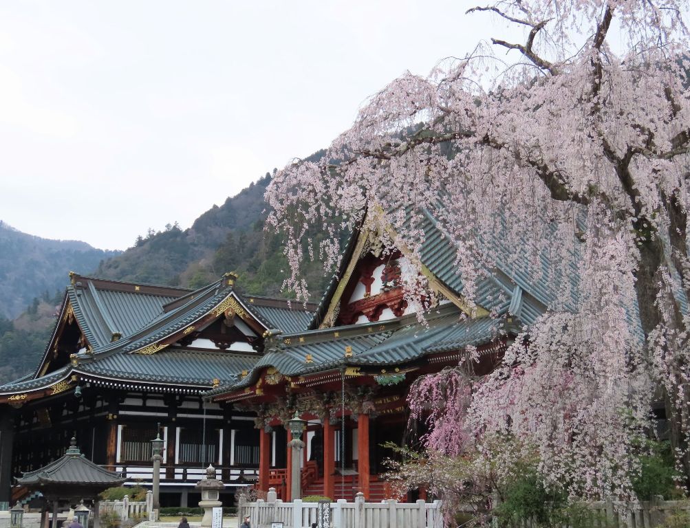 山梨県身延町にある身延山久遠寺は、樹齢400年で全国しだれ桜10選のひとつです。